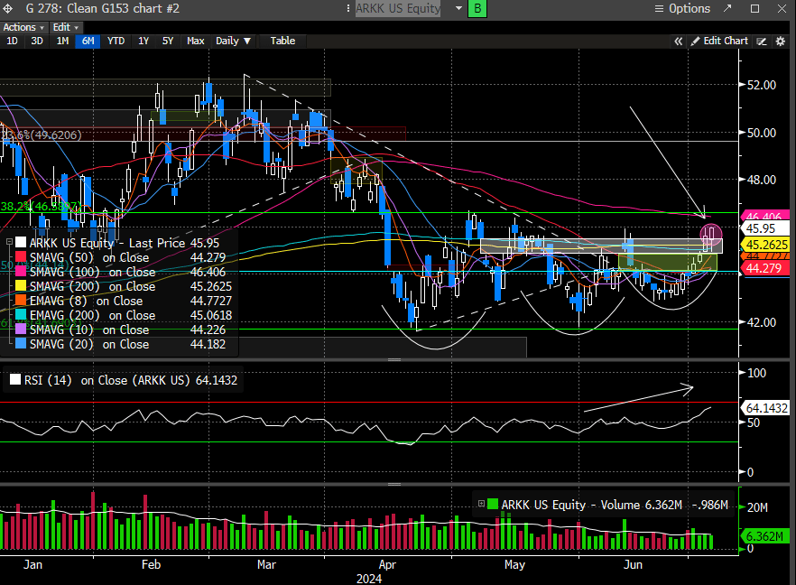 We did find it interesting that $ARKK (a proxy for unprofitable growth) has successfully reclaimed the 200-day MA. These peaks are coming on higher RSI momentum.