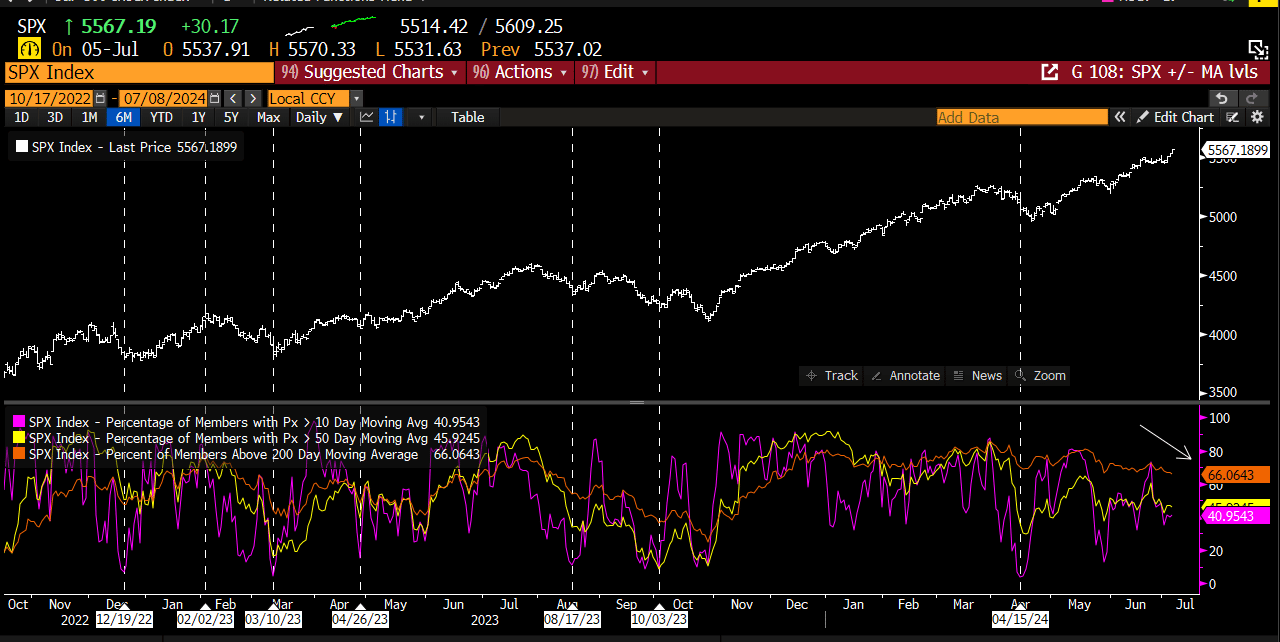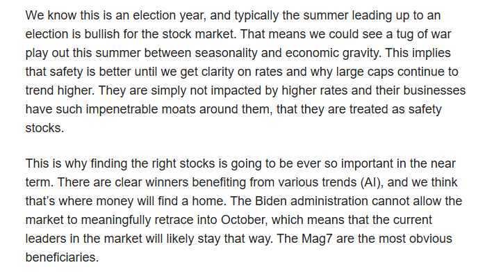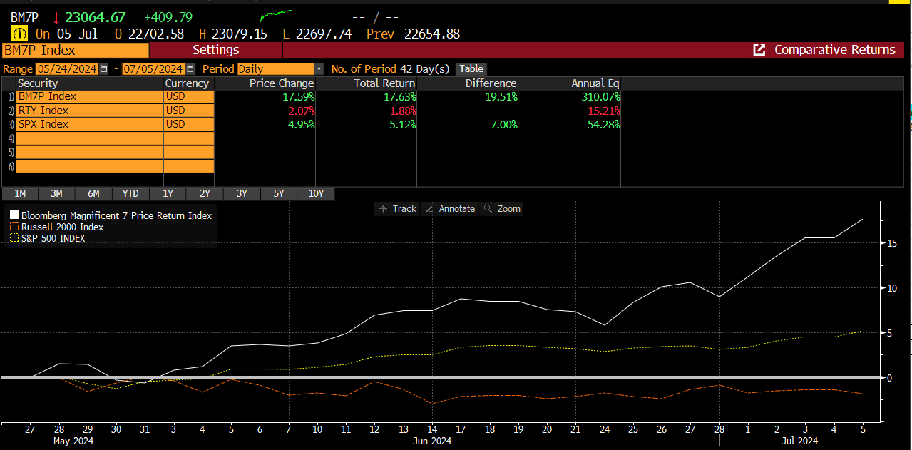 In our 5/26 report, we discussed the growing bifurcation in the stock market and explicitly mentioned favoring the Mega-cap Mag 7 stocks while avoiding the Russell Small Cap.