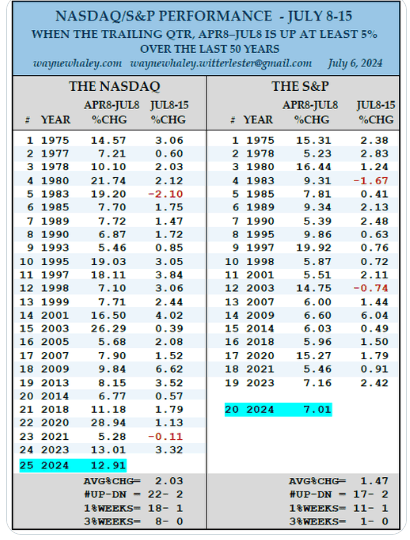 That said, the seasonality for this week remains quite positive. Here is a fun study from Wayne Whaley discussing the previous strength in the stock market and the ensuing record for this week; It’s overwhelmingly positive.