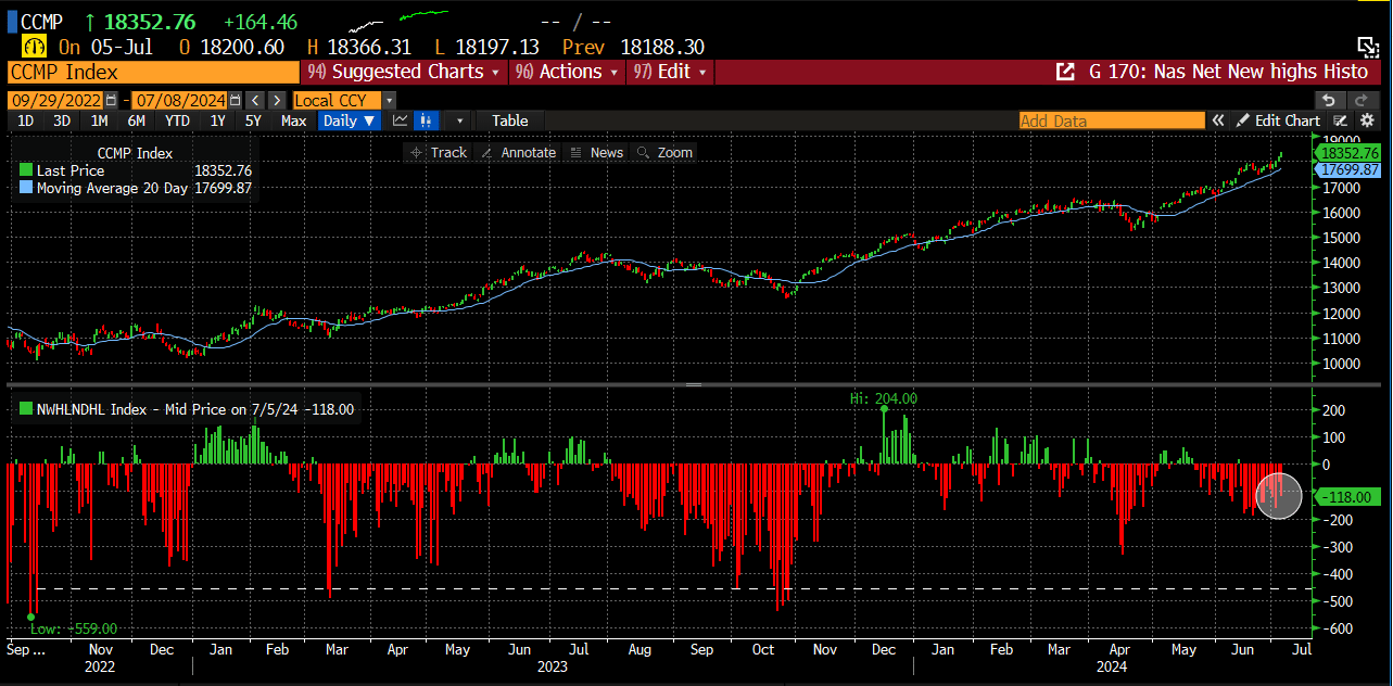 Nasdaq new 4-week lows continue to outpace new 4-week highs and continue to illustrate how bifurcated this market is.