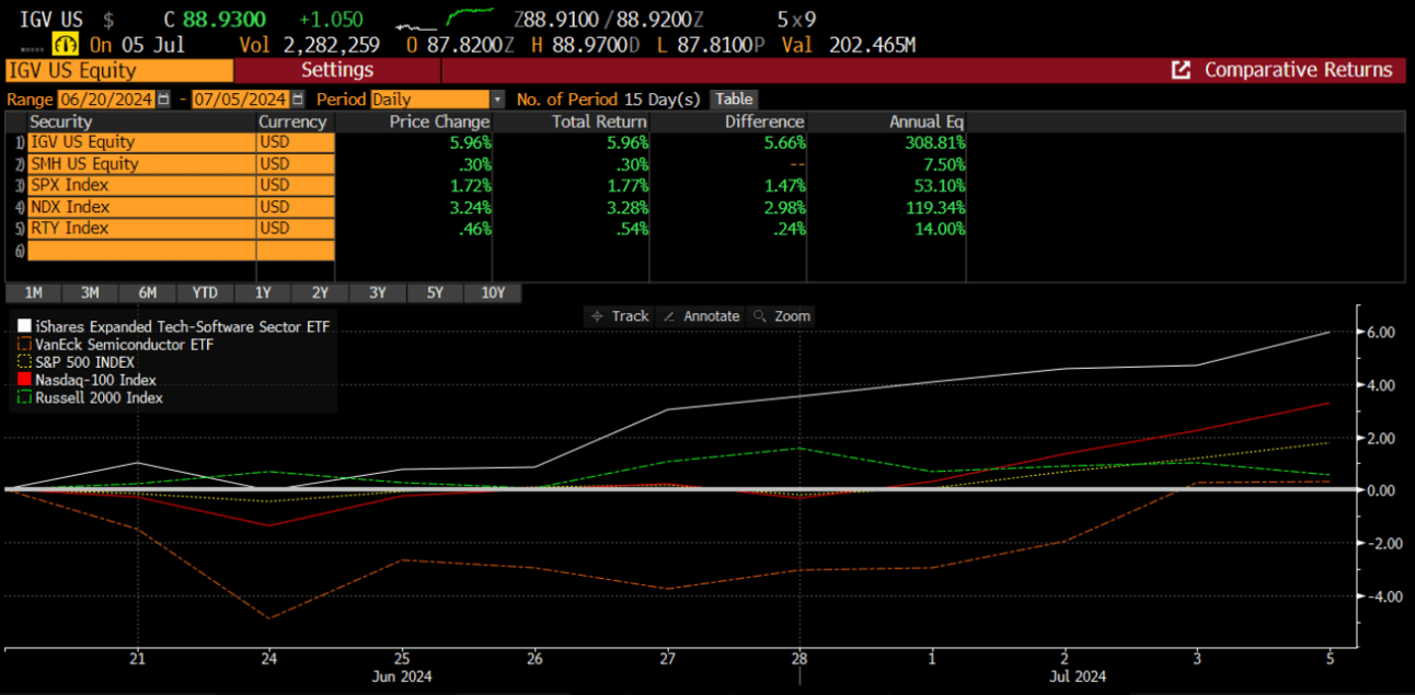 In our 6/23 report, we discussed the potential for a Semis to Software sector rotation. We highlighted those excerpts last week, so we will not belabor on this point, but this week, we saw the software index reach a new 52-week high and is currently testing its 2021 ATH.