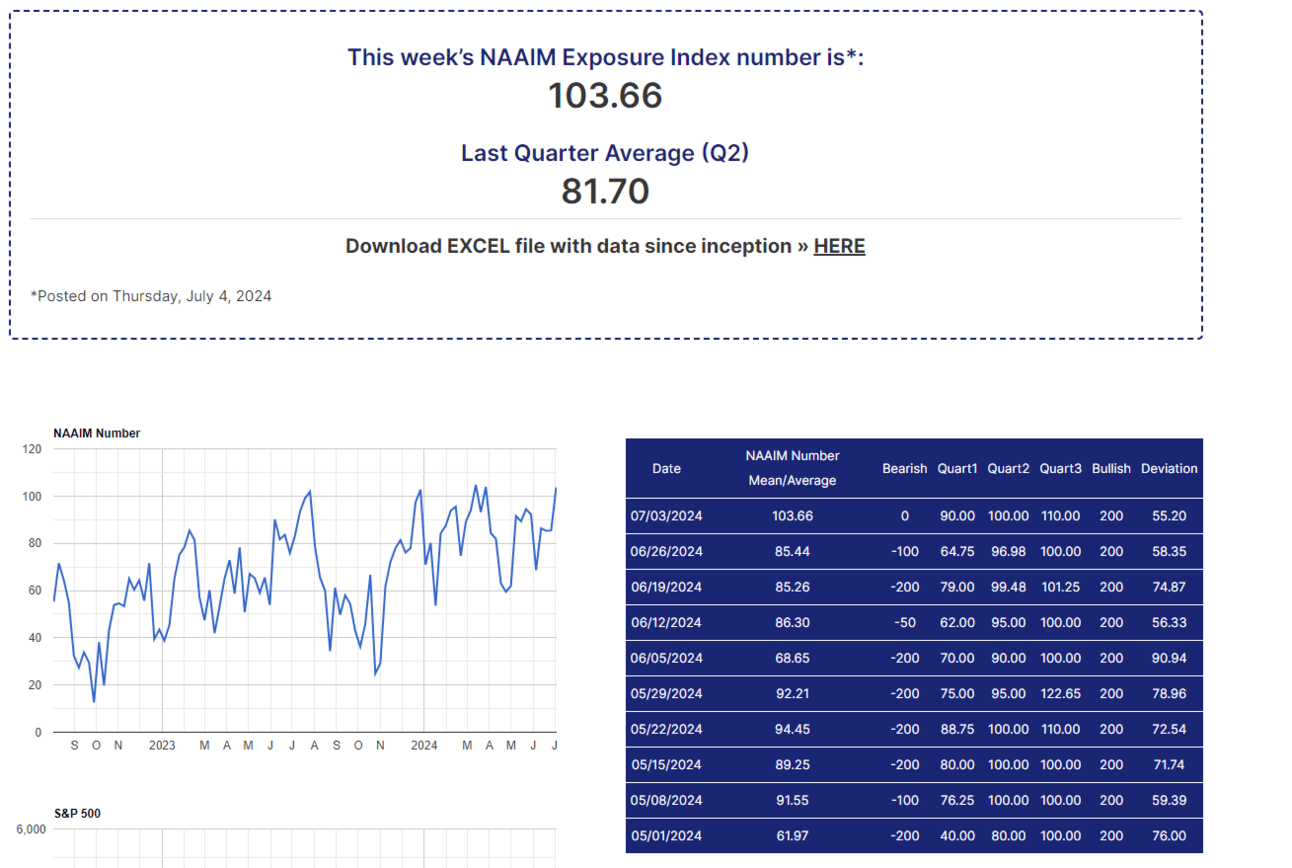 The NAIIM Exposure Index is officially in the danger zone. This suggests everyone is loaded on one side of the boat. The last time we were this elevated was on March 27th. The next day, the market peaked and proceeded to lose almost 6%.