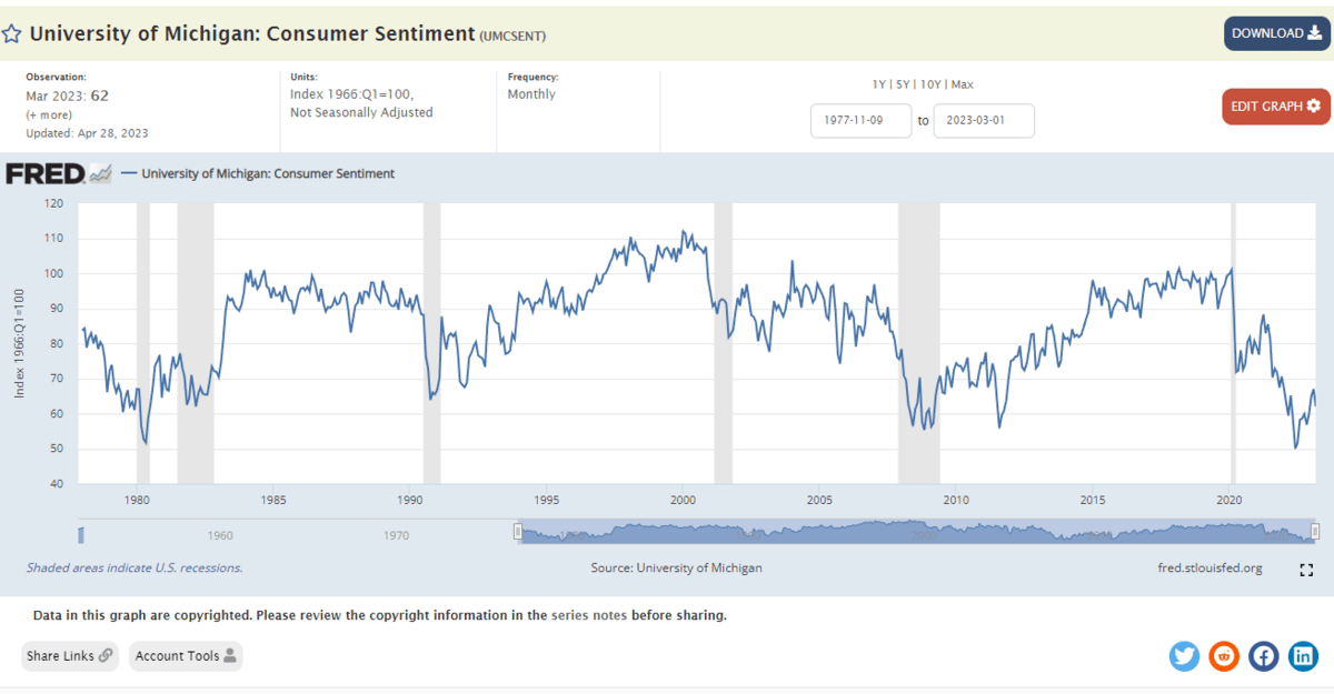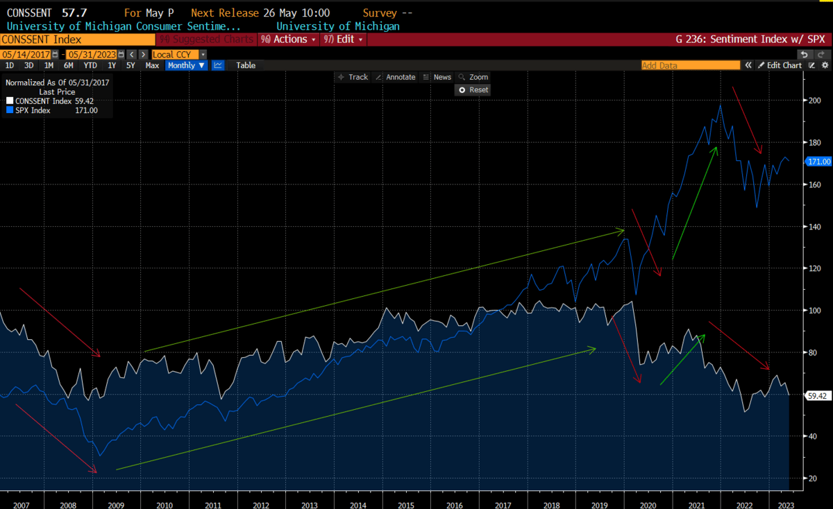 Consumer sentiment is important as US GDP is 70% tied to consumer spending. If they start pulling back, there is a ripple effect across all industries and hence why the stock market tends to track consumer sentiment.