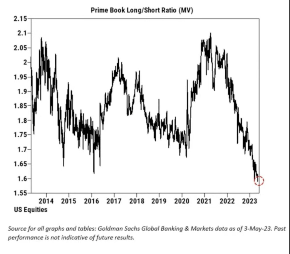 Here is a chart of the Prime Brokerage book from Goldman Sachs showing how lopsided their hedge fund clients are: