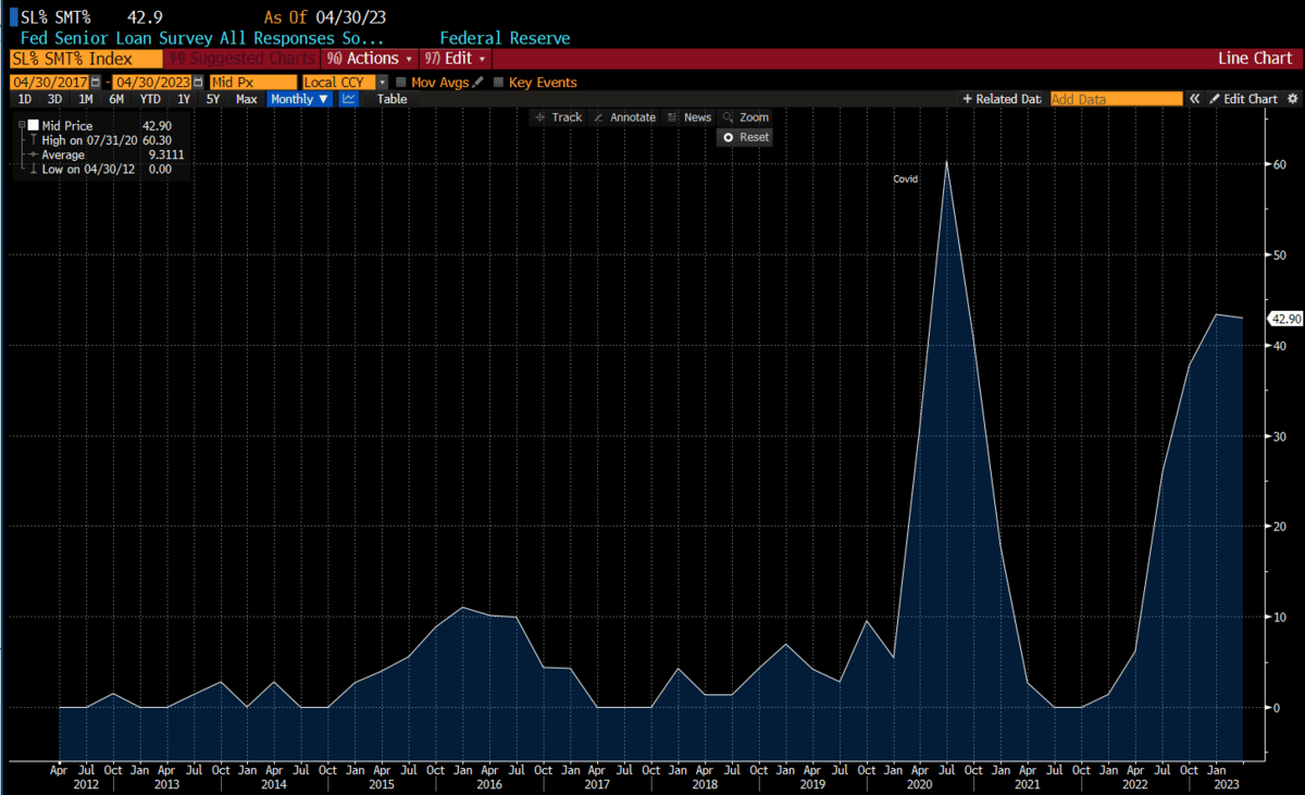 There is no shortage of reasons to be bearish. In fact, fundamentally, we are very concerned. We see potential fallout from the banking crisis only now starting to show its colors. The loan survey recently reported demonstrates how tight credit is at the moment.
