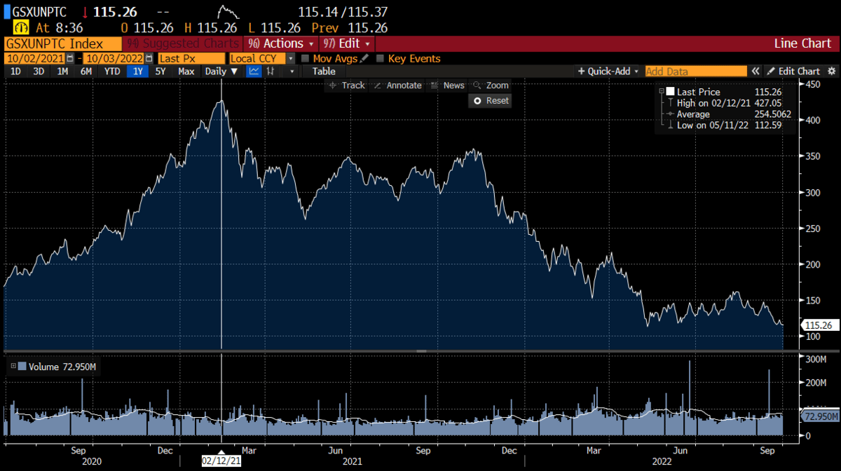 Here is a custom GS basket of stocks that is comprised of non-profitable tech. Coincidence these all peaked in Feb '21? ummmm, doubt it.
