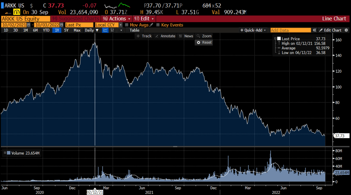 ARKK is the posterchild of the excess money bonanza. This peaked 2 weeks before the M2 was reported.