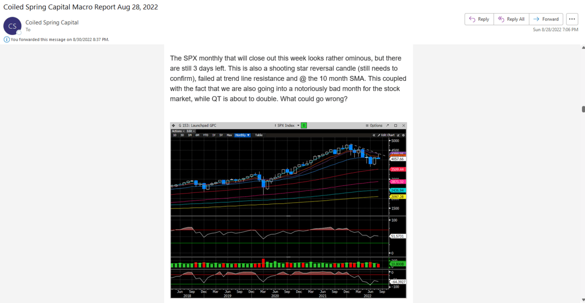 And while we got caught a nice countertrend move into the next swing high for 300 points into our resistance zone, the failure from there has been soul crushing (-13% for the SPX since Sep 12th pre-CPI high). Caution into Sept was warranted no doubt.
