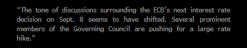 We are also seeing the unfolding of an energy crisis in Europe with the Nord Stream pipeline shut down on Friday. This coupled with an ECB rate hike cycle that has just begun:
