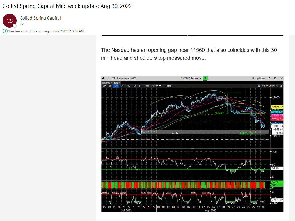 The low on Thursday for the Nasdaq was 11546 and bounced +3.46% before rolling over on Friday.
