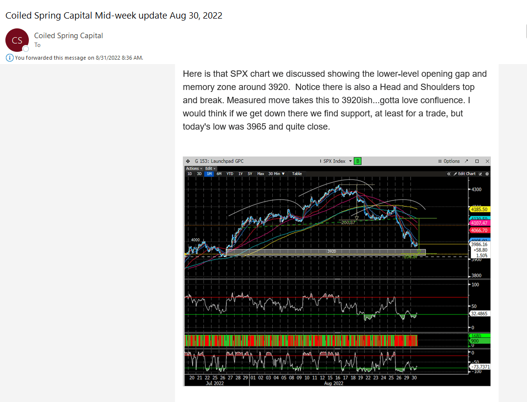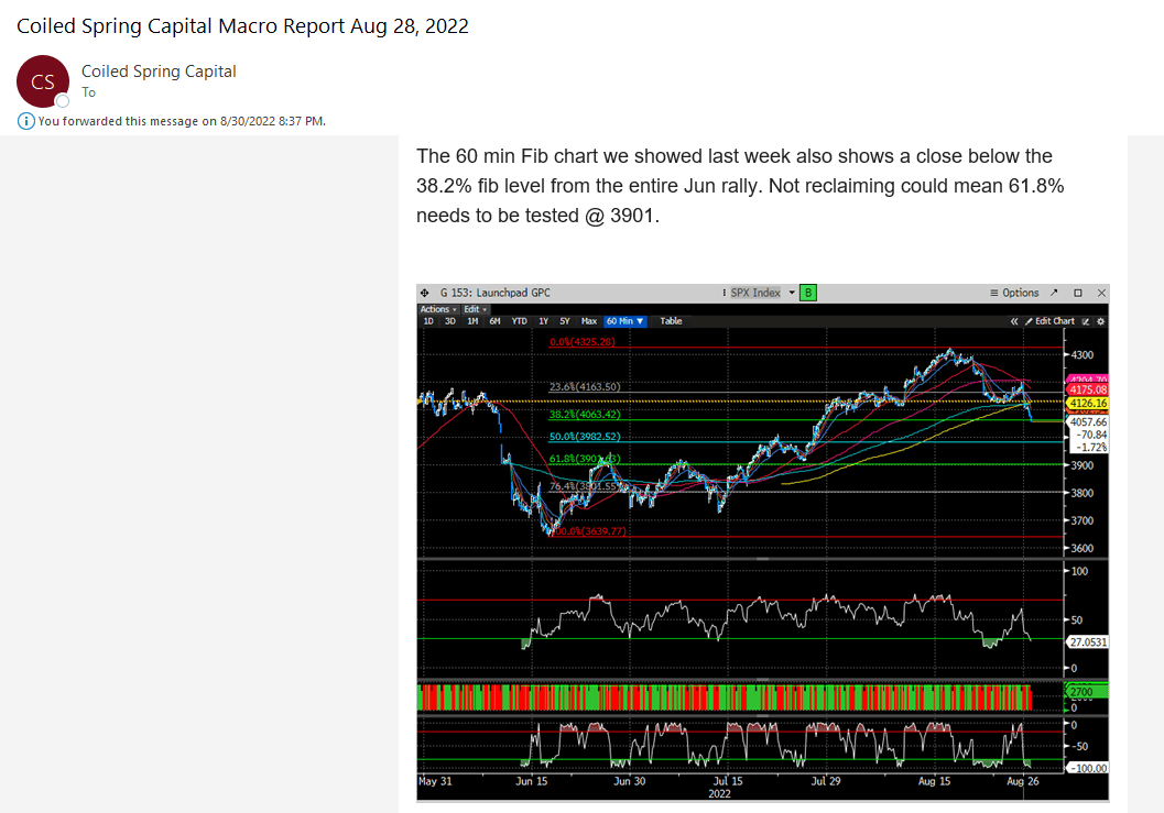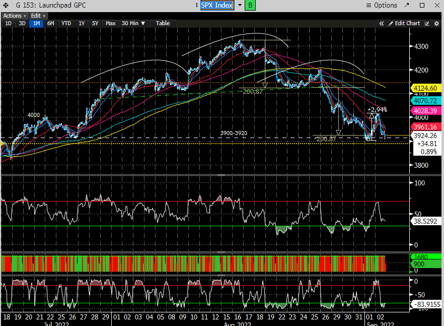 Thursdays low was 3903. This 61.8% Fib level also coincided with a confluence zone that we wrote about weeks ago in the 3920 region. We highlighted this region as having even more importance in our mid-week update on Tuesday and suggested that it would at least support a bounce trade.