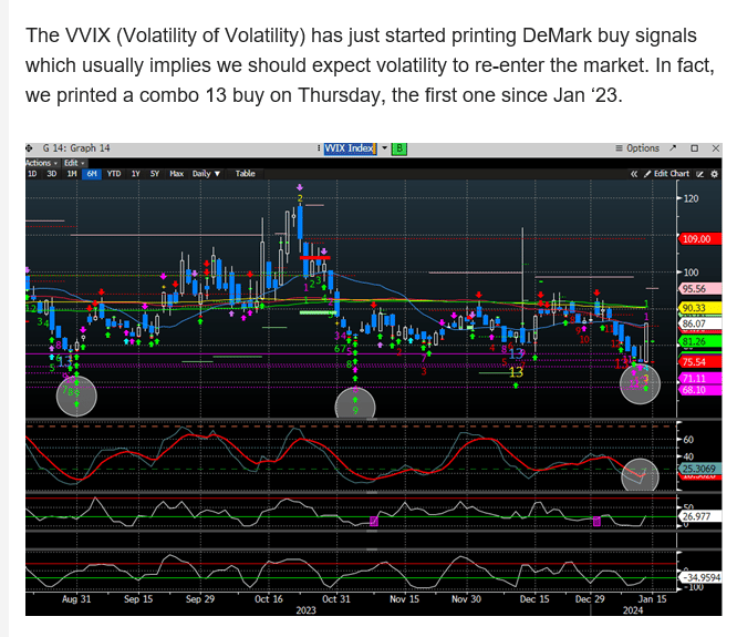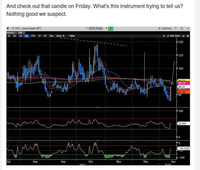 Last weekend we also highlighted this chart from Friday of the VVIX (volatility of volatility).