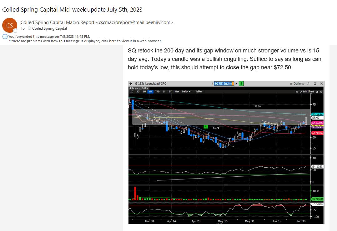 We also closed out $SQ last week, albeit a tad early, for another +12%. Here is that excerpt: