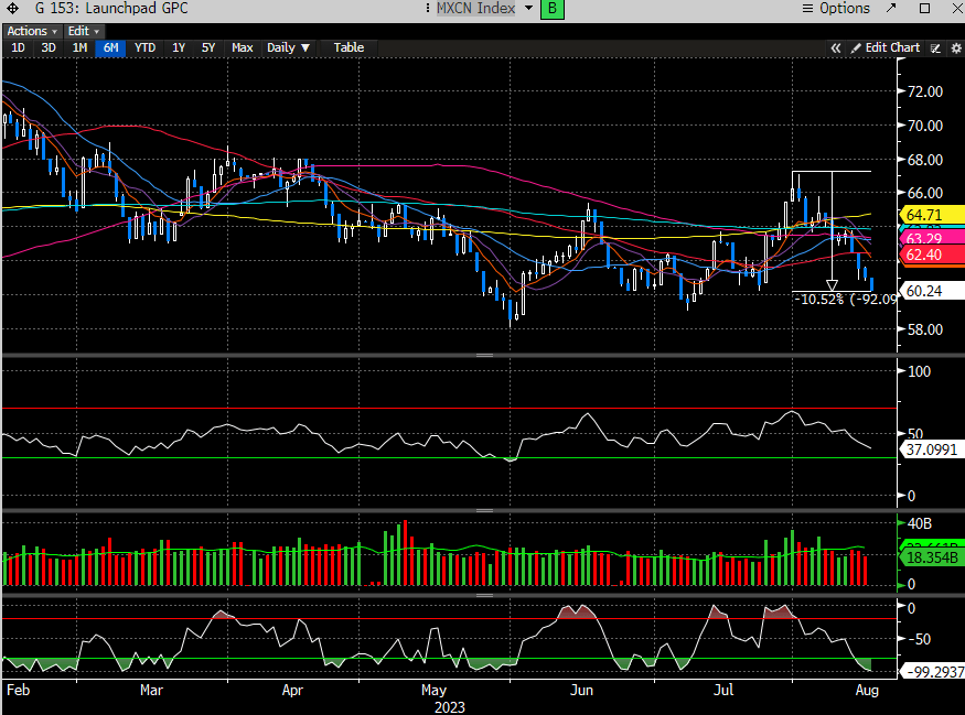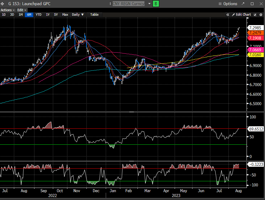 The Chinese Yuan is getting hit as a result and now approaching levels not seen since late ‘22.