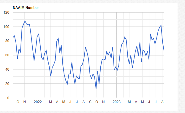The lack of buying in the market supporting price levels is indicative of a market that was too bullish at the end of July. We talked about the NAAIM exposure being over 100% at that time vs 12% back in Oct at the lows. This number is now back to a very reasonable 65% but late buyers into the stock market have gotten scorched. Those late buyers returning back to the market will likely require something materially changing in the macro.