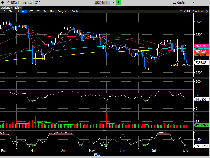 Europe (UKX Index) is also taking a beating and down almost -5% since the end of July.