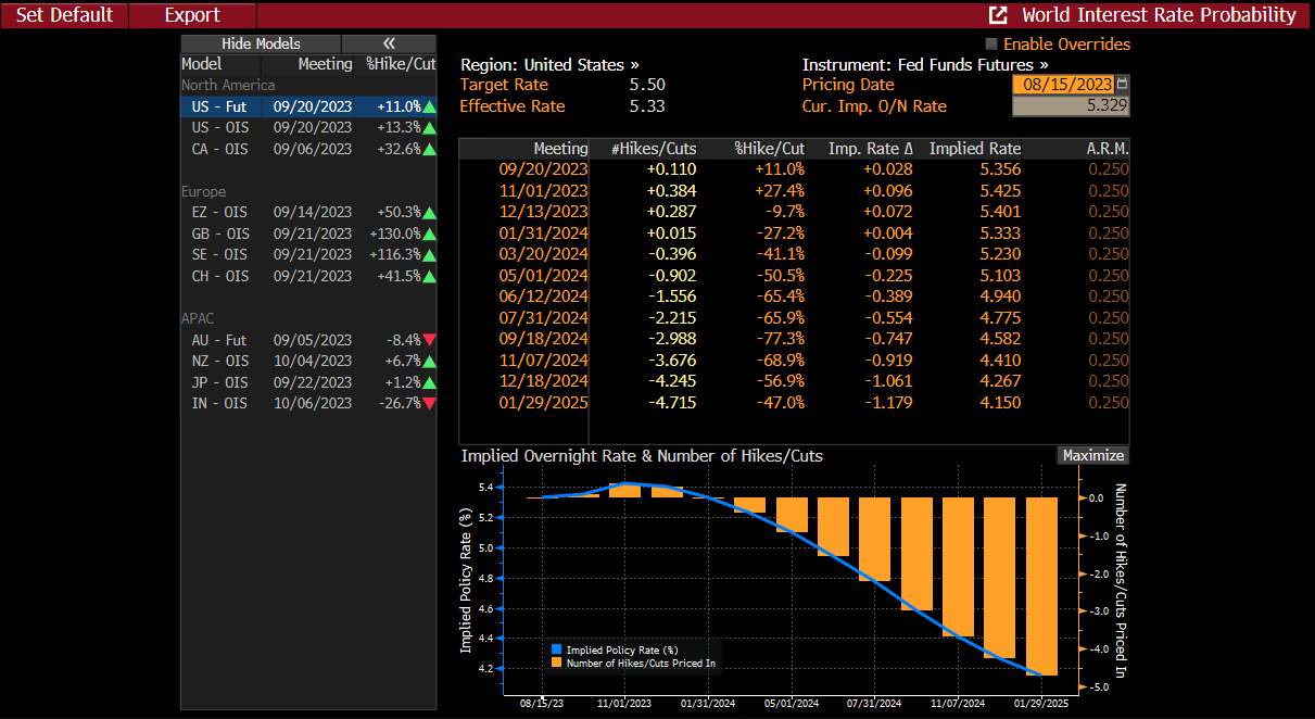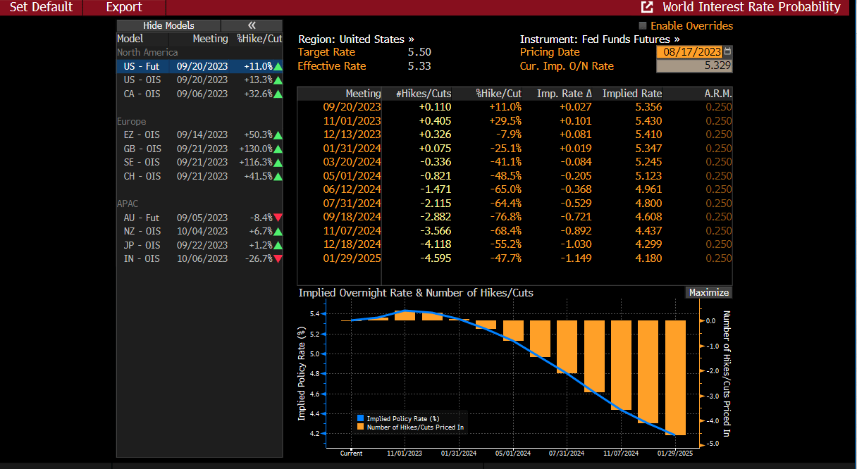 But even with the release of the hawkish FOMC minutes today, Fed Fund Futures are not pricing in more hikes and cuts are still slated to begin early next year.