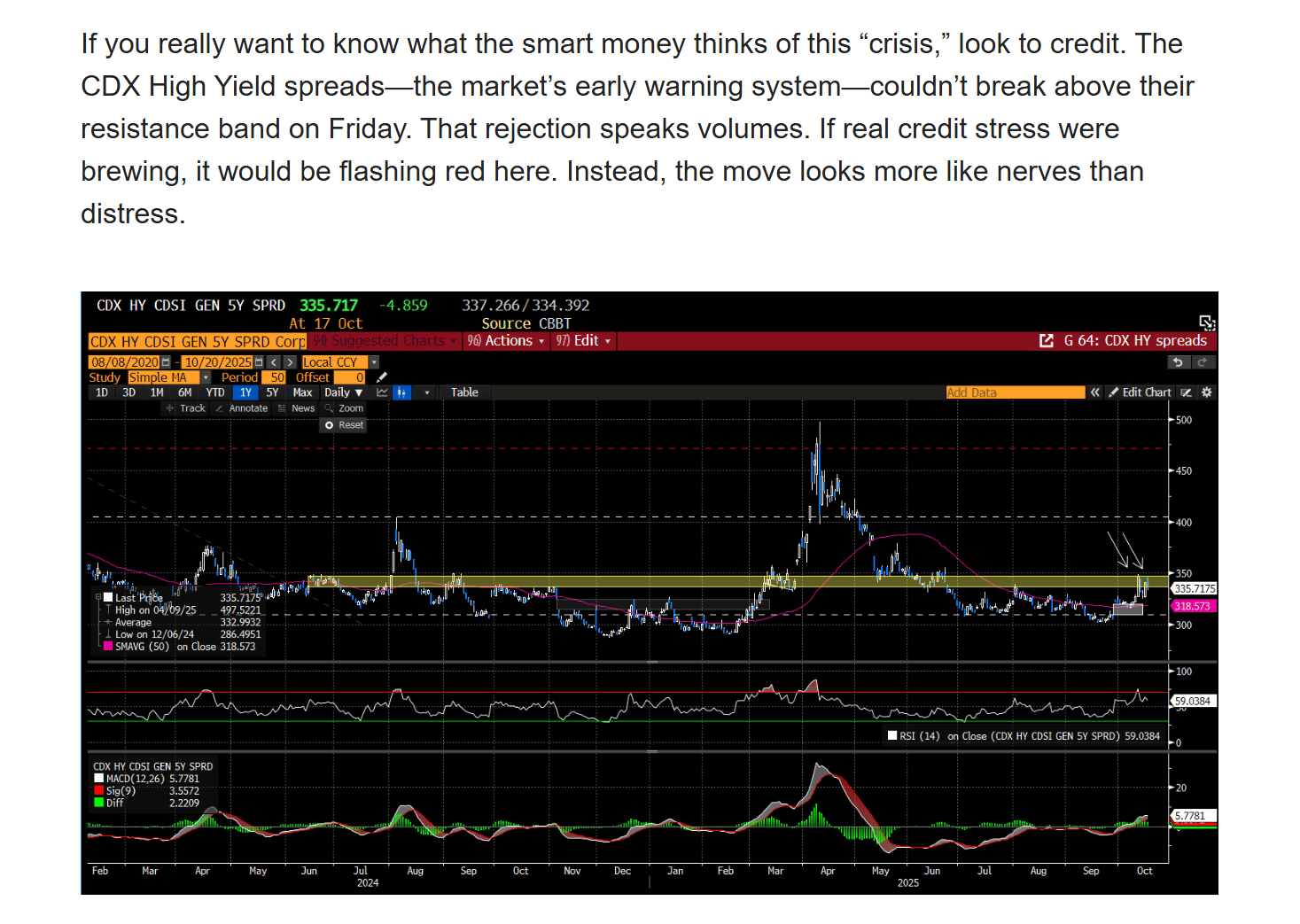 Remember, the market itself is the clearest expression of collective psychology. When equities managed to close higher that week—despite breathless warnings of a renewed credit contagion—it spoke volumes. Price action told a different story than the weekend panic, revealing a striking absence of genuine investor fear.