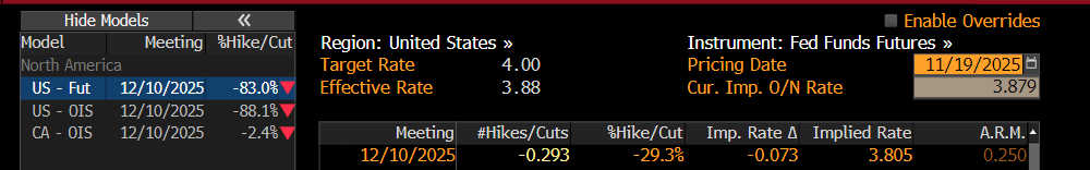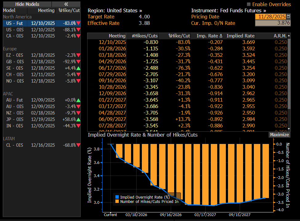 The market is now pricing an 83% chance of a December cut. Say what you want, but macro still runs the show and usually steamrolls everything else. Heading into Williams’s remarks, the prevailing narrative was clear: if the Fed didn’t cut in December, it risked a policy mistake. Markets don’t shrug those off. The setup had uncomfortable echoes of 2018’s taper tantrum, when a perceived misstep sent equities spiraling ~20% into year-end.