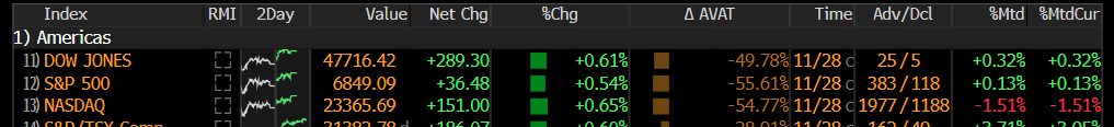 Let’s be clear: the market didn’t “calmly recover”—it snapped back with force. After spending most of November flirting with a cliff, sentiment flipped on a dime as long-dormant seasonality finally decided to show up. What looked like a market ready to break turned into one of the most jarring late-month reversals on record.