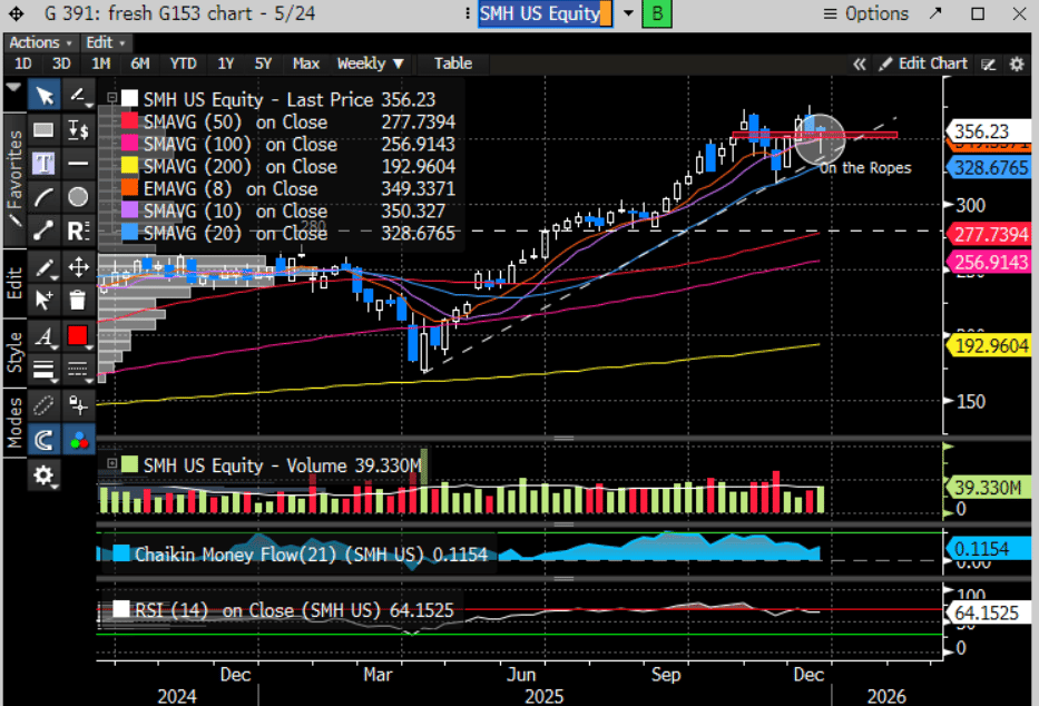 If you recall from our 12/17 report, we highlighted the key trendline extending from the April lows in SMH, noting that bears would need to break it decisively to seize control.
