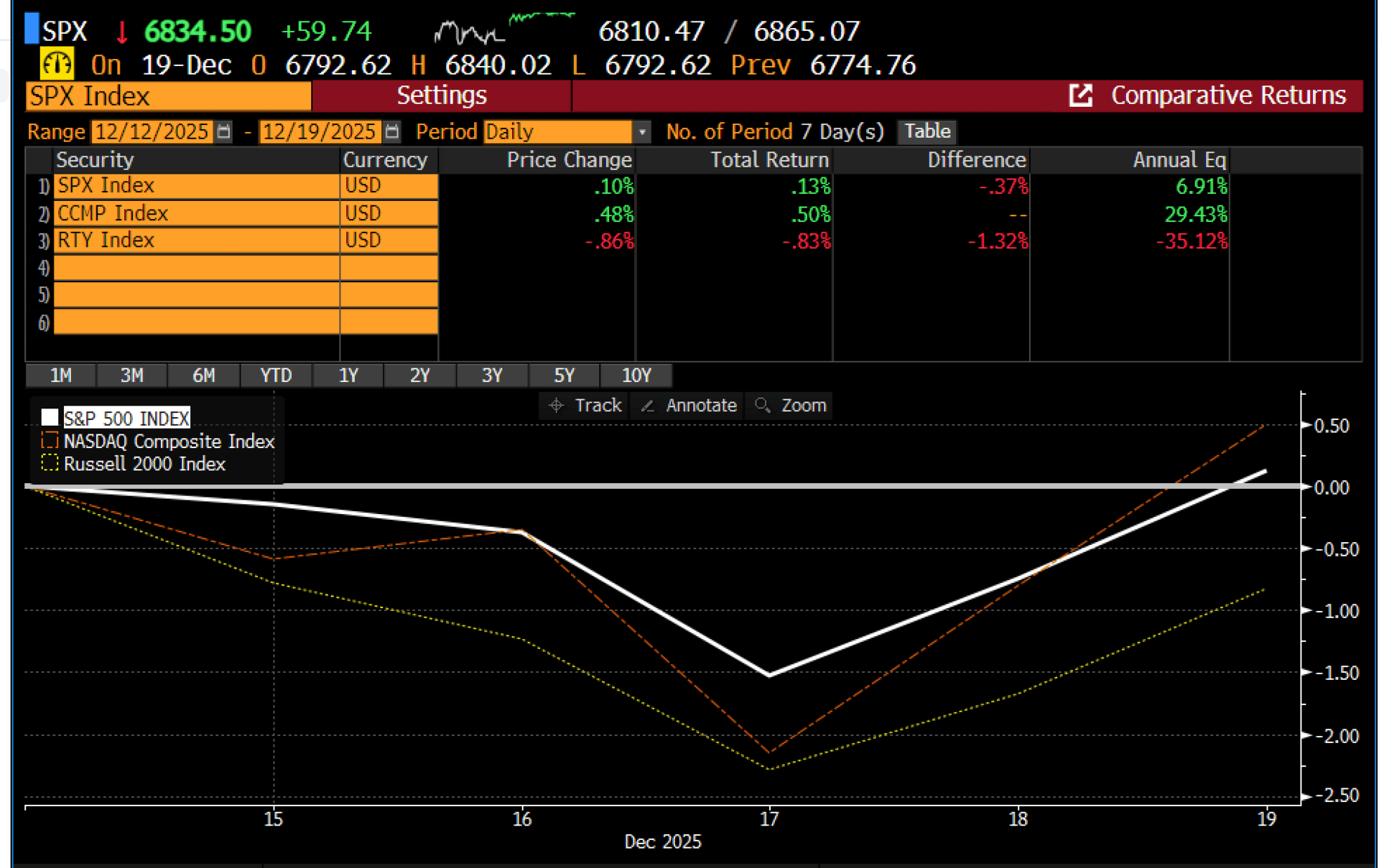 Both the S&P 500 and Nasdaq finished the week in the green, despite a sharp dip in the first half—another reminder that this tape has little interest in staying down.