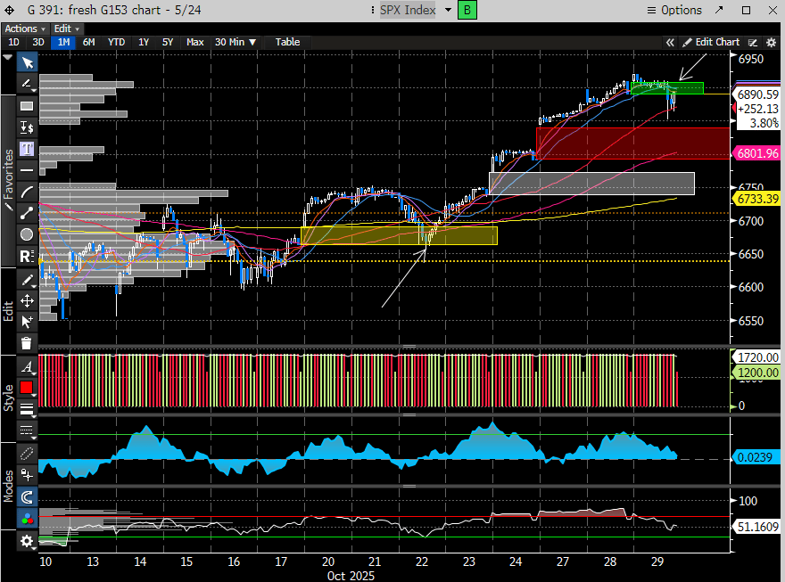 Not only must investors navigate shifting rate-cut expectations, but the Mag 7 earnings on Wednesday night added fresh uncertainty. GOOGL delivered solid results, but MSFT fell short of lofty expectations, and META is under heavy pressure following a substantial increase in capital expenditures. While higher capex should ultimately benefit AI infrastructure names, the short-term reaction could trigger broad large-cap selling that could easily spill over into the wider market.