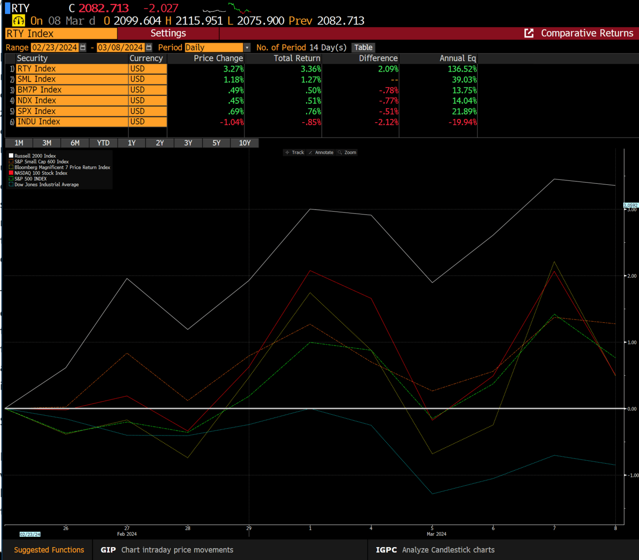 The Russell Small Cap Growth Index is outperforming almost 300bps when compared to the Nasdaq 100. If you are an institutional manager, 300bps of outperformance can make your year.