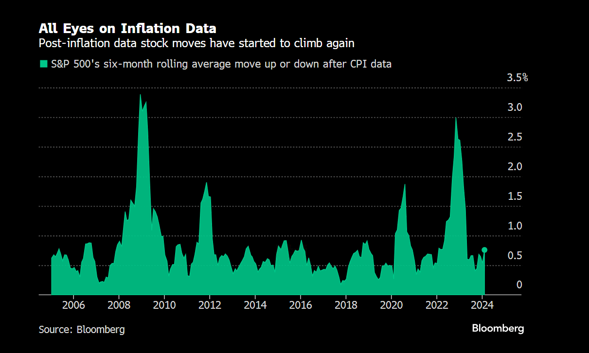 Does the CPI have the power to create increased volatility? Of course, but we think inflationary readings, as long as somewhat in line and moving in the right direction are not enough to push the market meaningfully lower. That said, they are starting to cause more volatility as evidenced by the chart below.